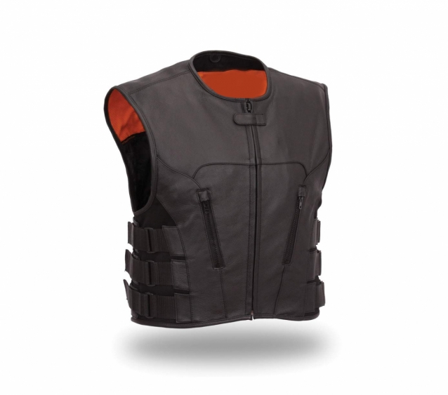 - 100% drum dyed Leather - Elasticized Waist & Side Panels - Classic Matt Finish Look - Plastic Zippered Front Closure - Multiple external and internal pockets .